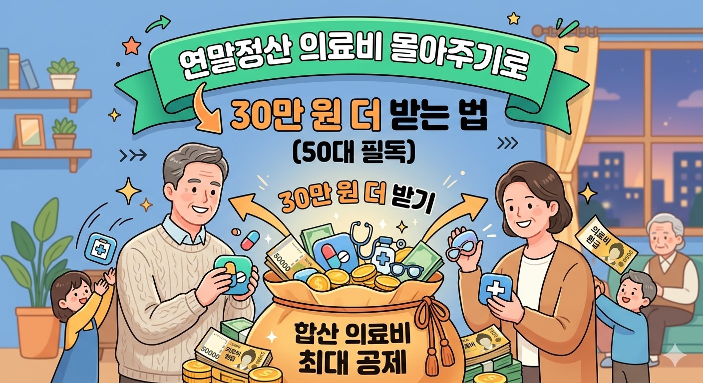 의료비는 '소득이 낮은 사람에게 몰아줄 것', 그리고 '실손보험금을 뺀 순수 지출액을 계산할 것'. 이 두 가지만 기억해도 50대 가장의 연말정산 봉투는 훨씬 두둑해질 것입니다.
