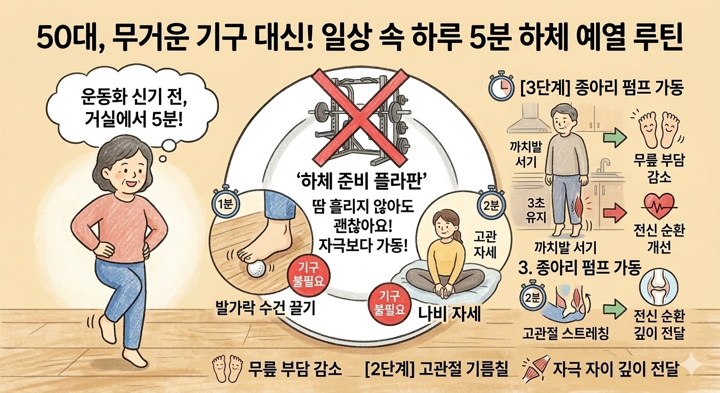 그래서 오늘은 50대도 부담 없이 할 수 있는 하루 5분 하체 운동을 소개해 보겠습니다.