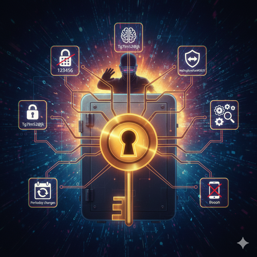 "디지털 시대의 비밀번호는 곧 나의 재산과 신분을 지키는 '디지털 금고 열쇠'입니다. 50대 이후의 안전한 온라인 생활을 위해 가장 기본적인 방어선은 바로 강력한 패스워드입니다. 해킹 사고의 대부분이 '약한 비밀번호'에서 시작된다는 사실을 아시나요? 오늘은 누구나 쉽게 따라 할 수 있는 안전한 패스워드 생성 및 관리법을 알려드립니다."