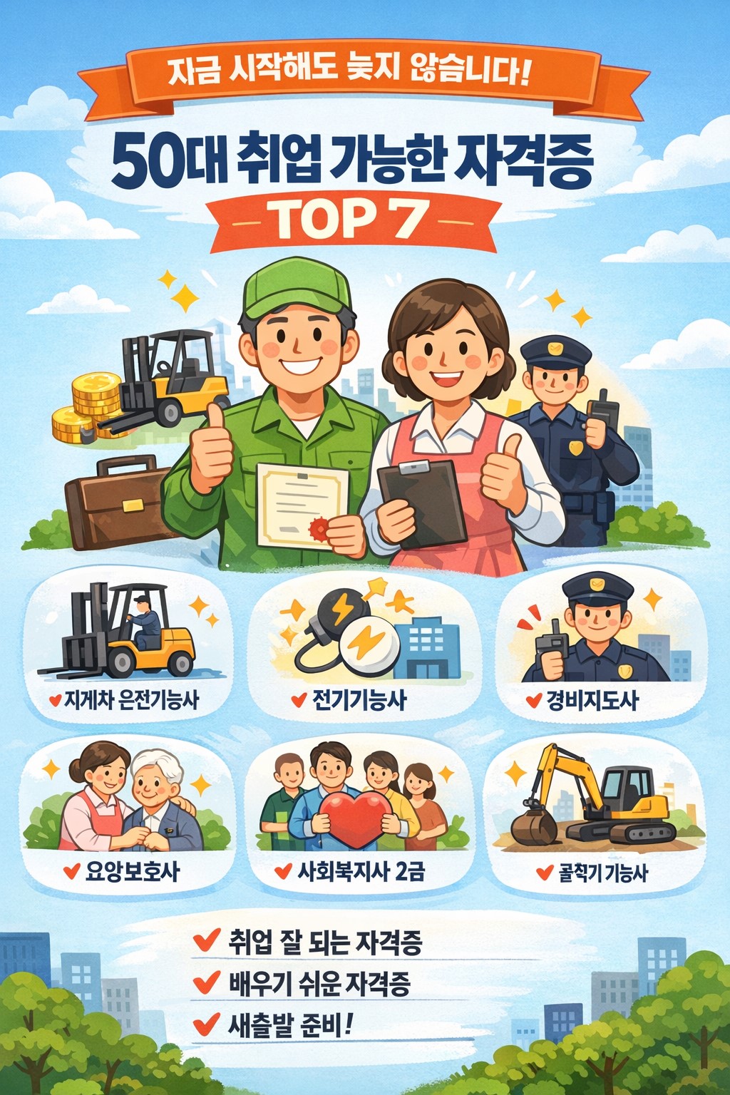 오늘은 50대가 도전하기 좋고 실제 취업으로 이어지는 자격증 7가지를 정리해 보겠습니다.